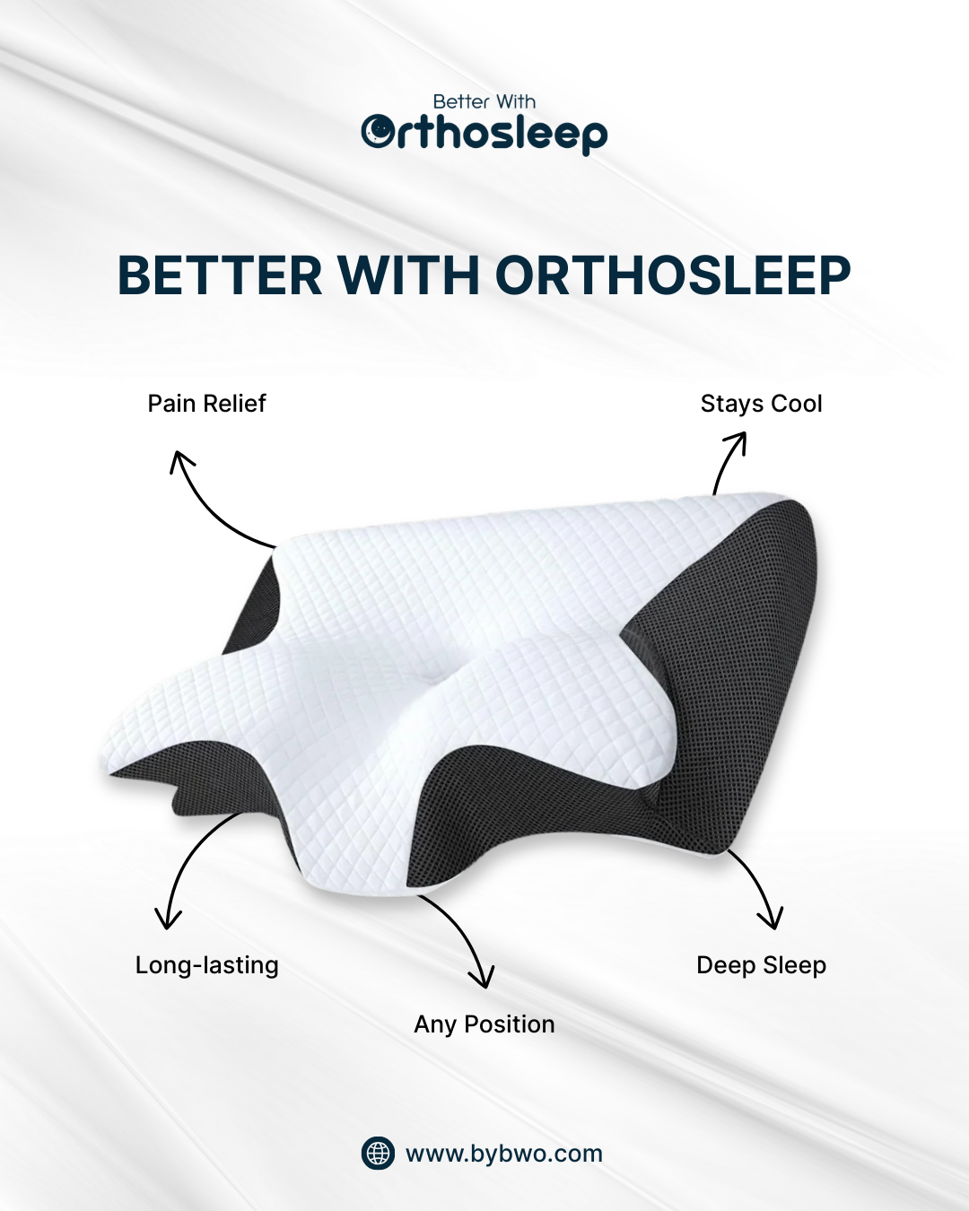 Discover the perfect balance of comfort and support with Better With Orthosleep™ - Orthopedic Support Pillows, designed to align your spine and relieve pressure for deeper, pain-free sleep.